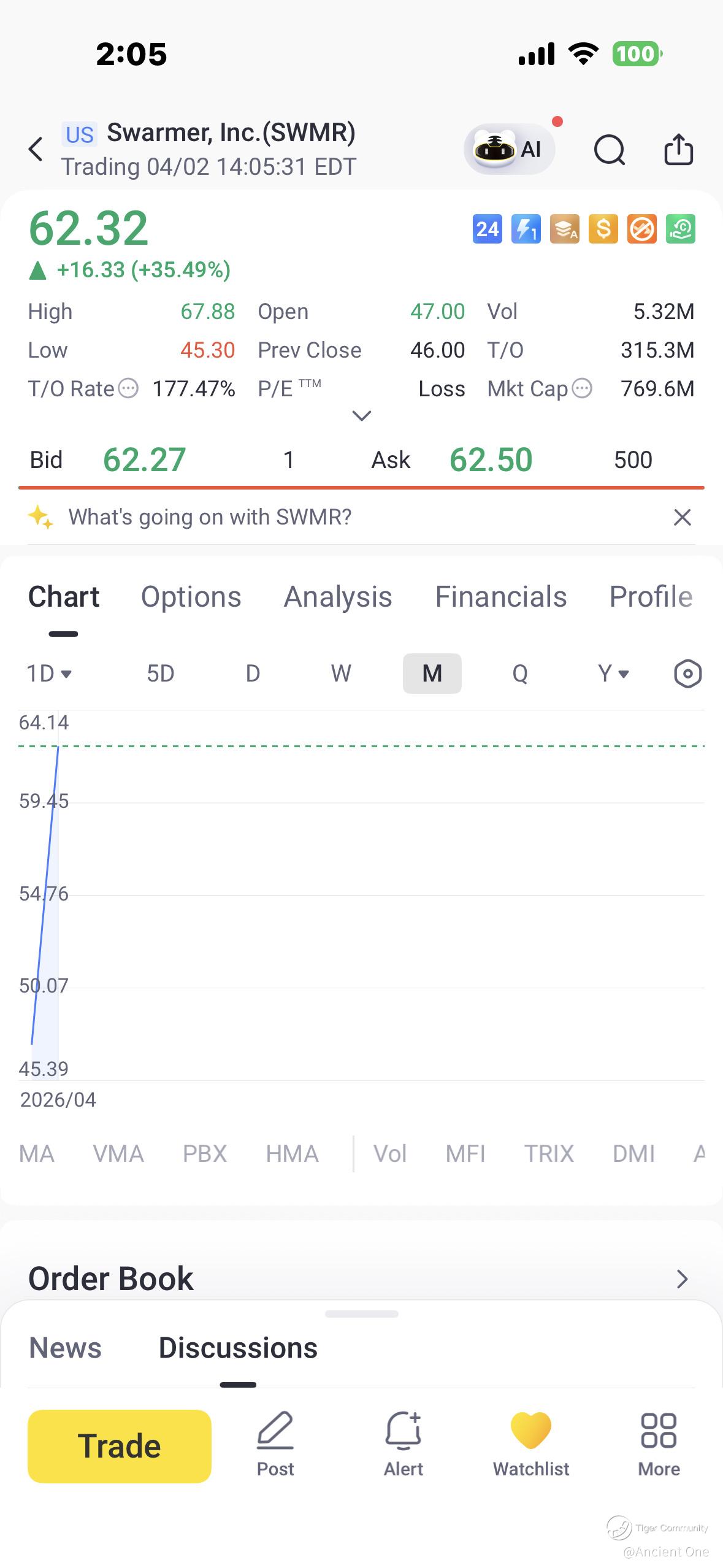 $Swarmer, Inc.(SWMR)$ heh, 1 lot ask snd 1 lot bid.. trade as a meme stock or just to support the incredible guys fighting in Ukraine!!