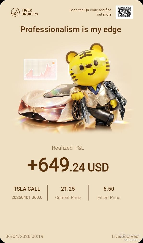 $TSLA 20260401 360.0 CALL$ Highest option profit