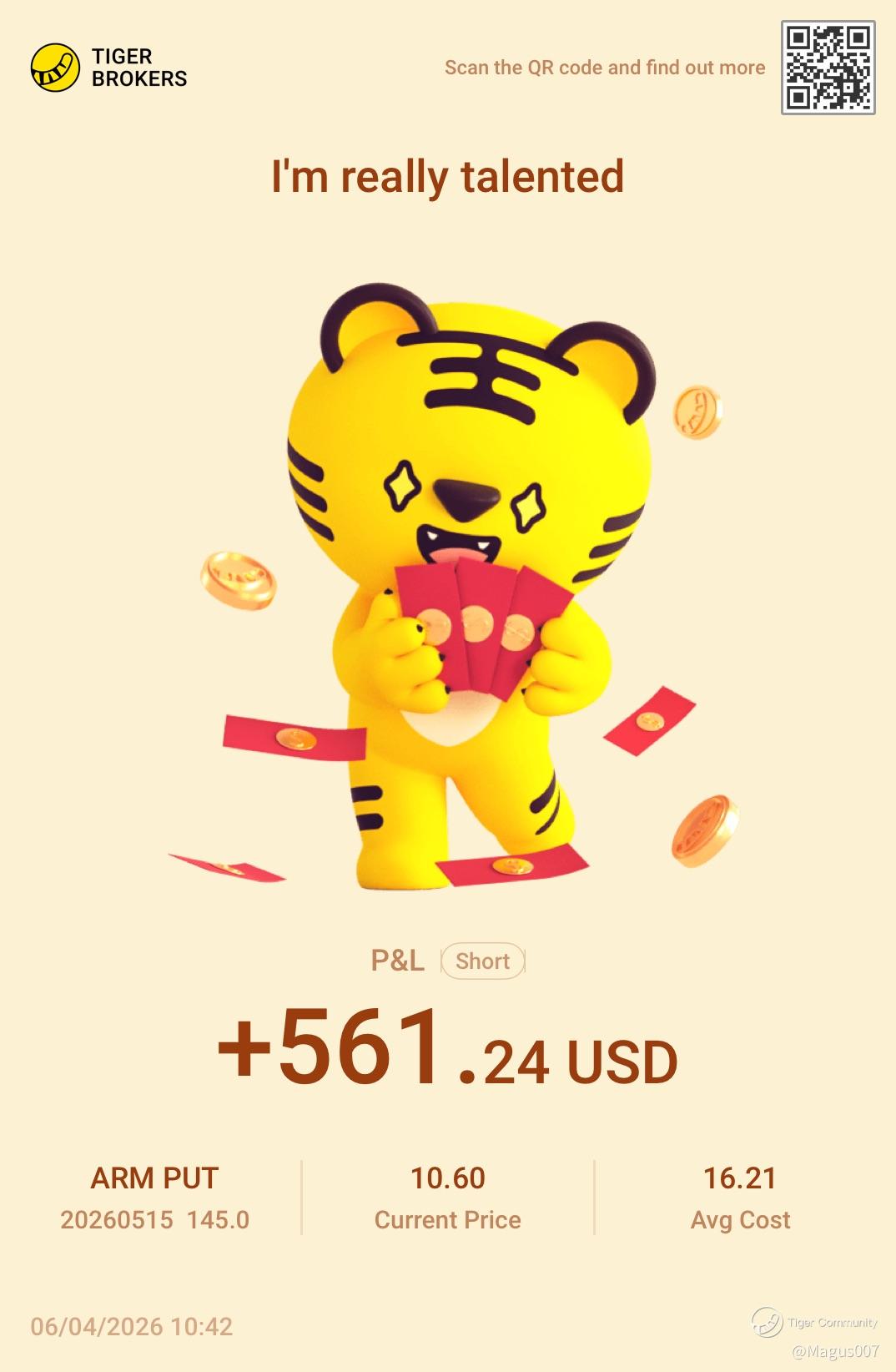 $ARM 20260515 145.0 PUT$ Riding on the market waves đ đ [Miser] [Happy] [Happy]