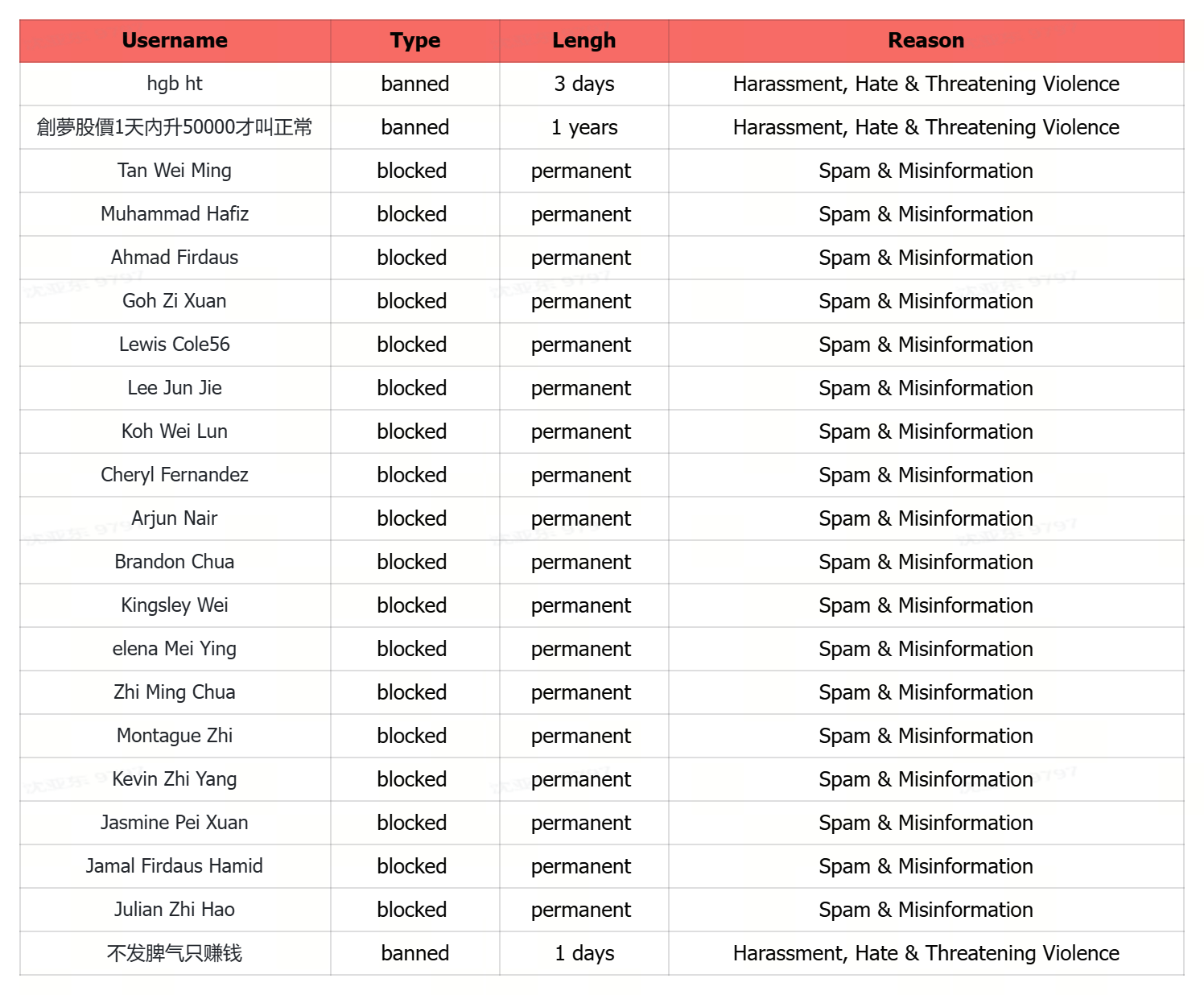 Here is the List of Banned Users Recently: