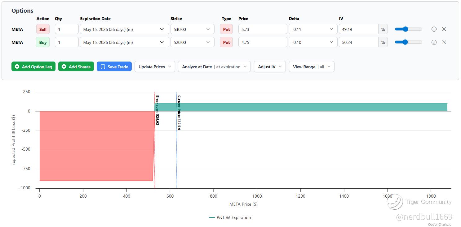 Goal: Collect credit as long as $Meta Platforms, Inc.(META)$ META stays above $530.