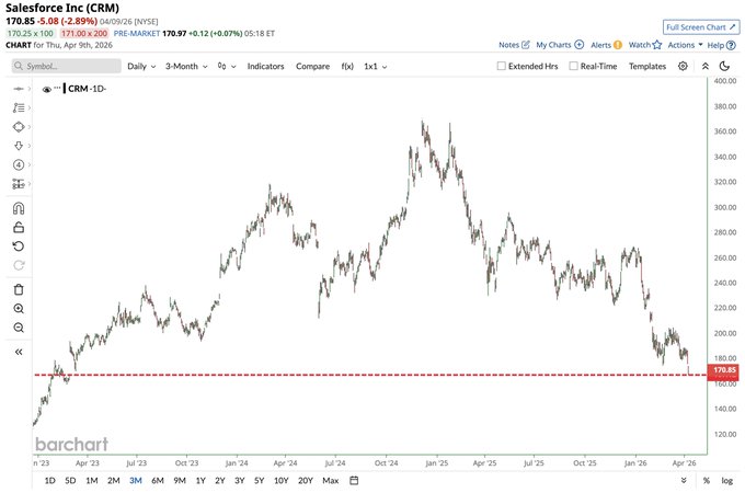 Salesforce $CRM falls to its lowest price in more than 3 years 📉📉