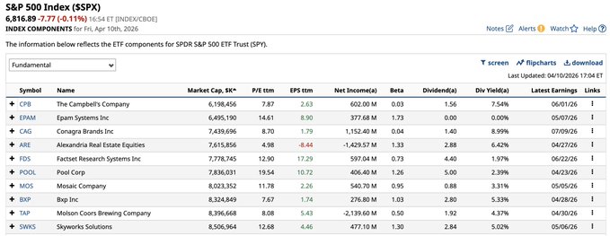 Campbell's Soup $CPB now has the lowest market cap of any stock in the S&P 500 and is in grave danger of getting the boot the next time around 🫡
