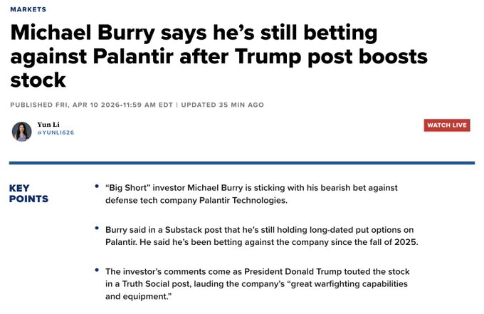 Palantir $PLTR is worth well under $50/share warns Big Short Investor Michael Burry 📉🤯👀