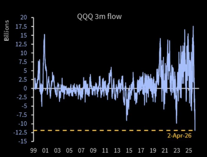 Nasdaq $QQQ just saw its largest 3-month outflow this century 📉💸🤯