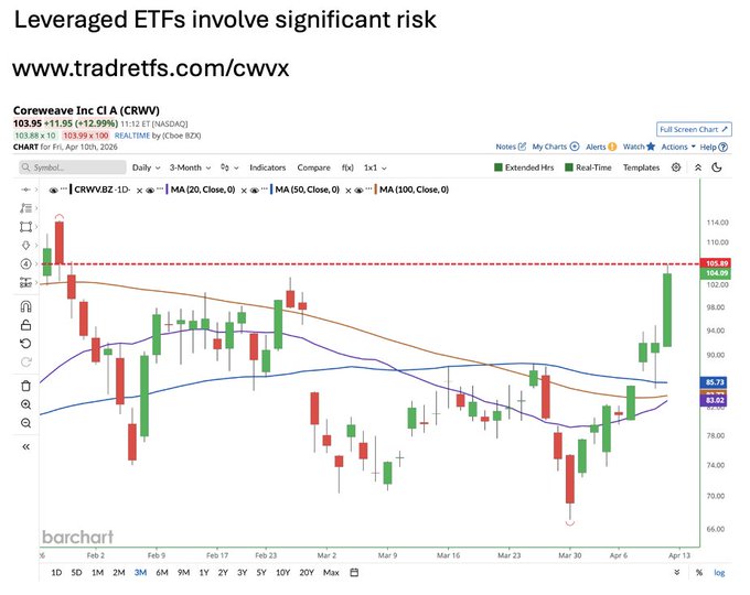 As these names enter momentum and price discovery phases, leveraged ETFs like $COZX, $GEVX, $NEBX, and $CWVX are attracting attention from traders seeking amplified exposure — increasing both upside potential and volatility risk.