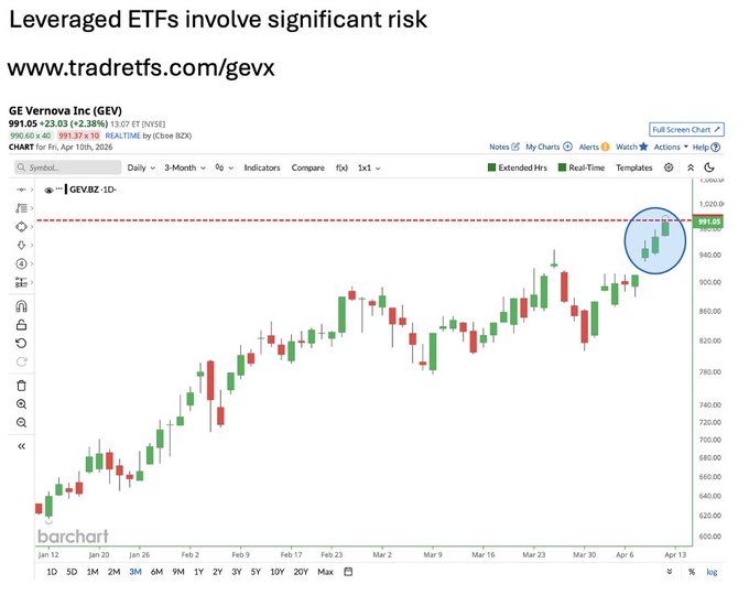 GE Vernova $GEV has now hit all-time highs in 3 consecutive trading days and is closing in a $1,000 share price for the first time ever 🚨 Are more all-time highs coming? 👀 For magnified exposure, consider the Tradr 2X Long GEV Daily ETF $GEVX
