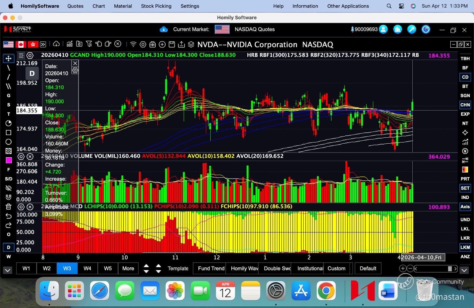 With that the NVDA daily chart has also cleared the resistance of rainbow lines with small institutional investors accumulation (red bottom bars) and no retail investors (green bars). This is a good sign and the next few weeks are important to see if the trend can sustain for the next breakout. The past few months of sideway trend are good consolidation period to pave the way for a strong support.