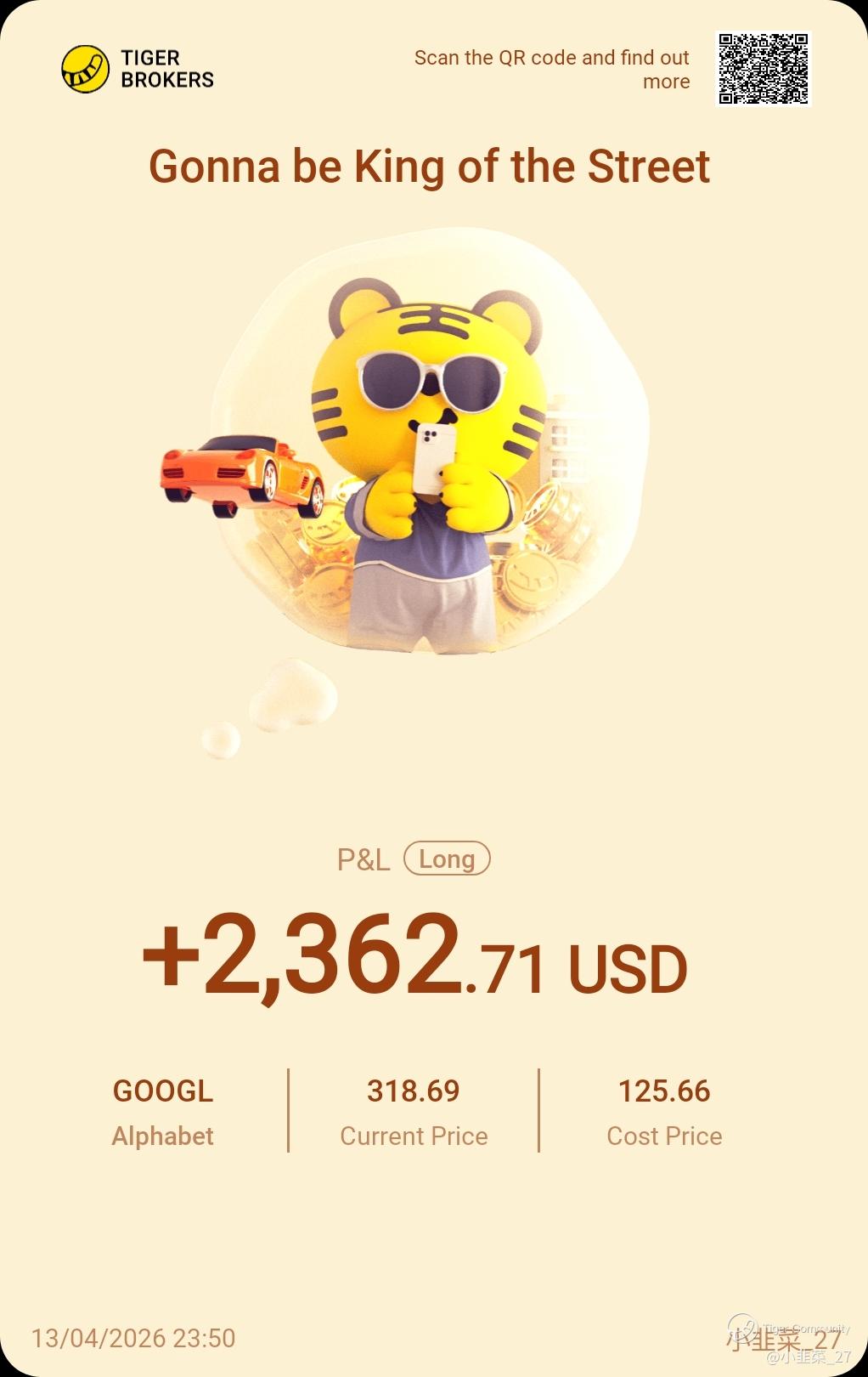Share your positions with us! This is a column where you can find the winning trades of our fellow tigers. There probably are a few potential opportunities that you may have overlooked.