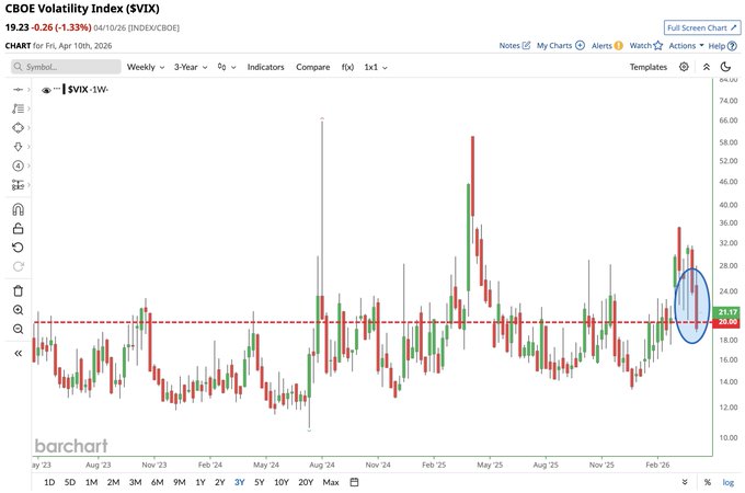 CBOE Volatility Index $VIX got its first weekly close below 20 since February đđŤĄđĽłđŤ