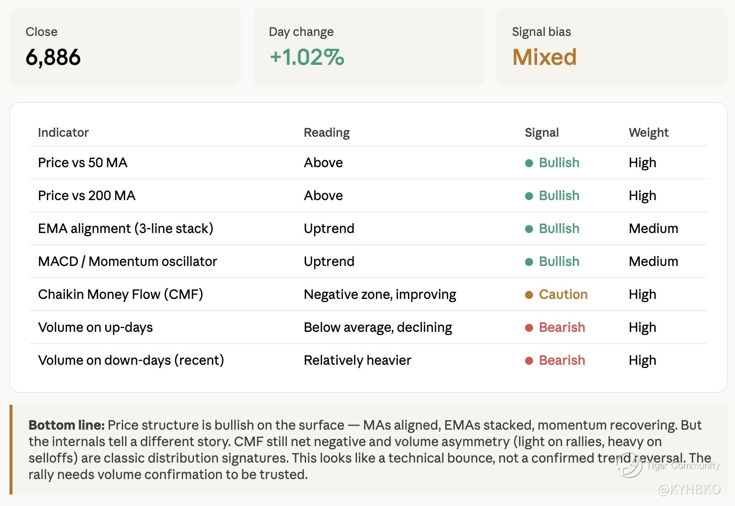 The Chaikin Money Flow (CMF) remains in the selling region even though there is increasing buying momentum.