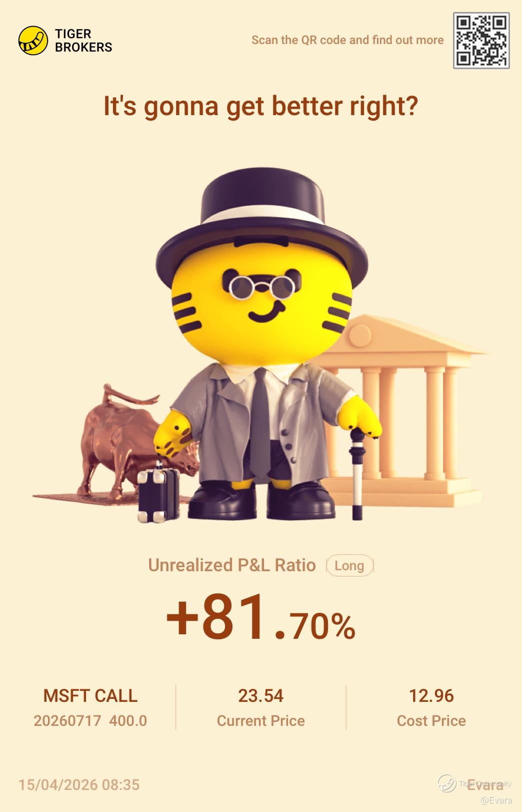 Share your positions with us! This is a column where you can find the winning trades of our fellow tigers. There probably are a few potential opportunities that you may have overlooked.