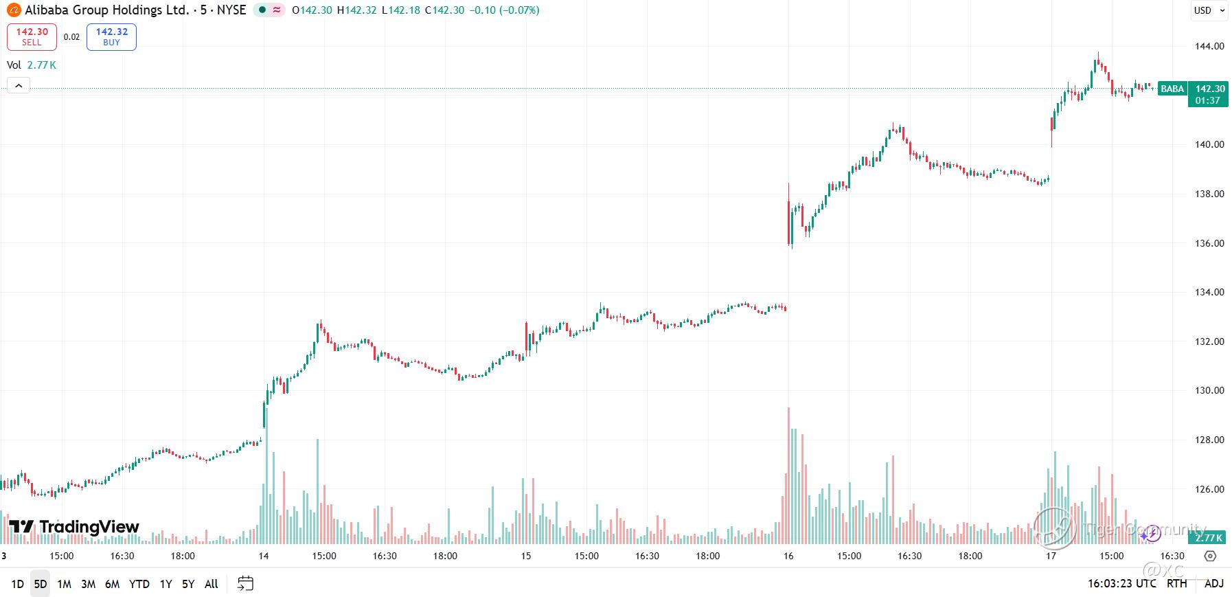 The 3.98% gain has pushed Alibaba above key short-term resistance, with $145 now acting as a potential new support floor after the move. Volume on the rally was solid, suggesting genuine institutional interest rather than pure retail speculation. Analysts see room for further upside if the model gains traction in gaming and entertainment partnerships, but any softening in broader China tech sentiment or macro headwinds could test that level quickly. The stock’s valuation remains attractive relative to growth prospects, especially as AI monetization narratives gain traction across the ADR space.