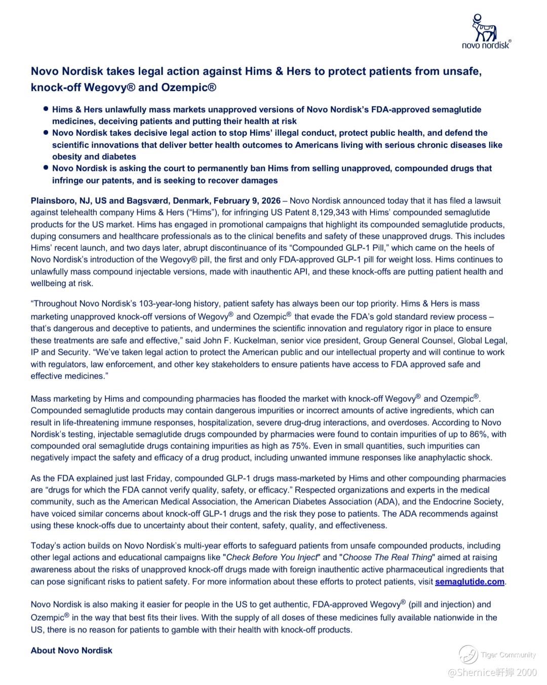 The situation reached a breaking point the following Monday morning. Novo Nordisk initiated a lawsuit against $HIMS, aiming to permanently bar the company from selling compounded drugs that allegedly infringe on its patents, while also seeking financial damages.