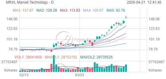 In Monday's after-hours session, Marvell Technology (MRVL) extended gains by nearly 3%, bringing its month-to-date rally to nearly 50% with repeated record highs.