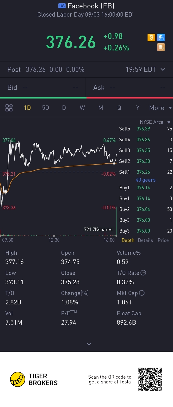 $Facebook(FB)$ Slowing going up