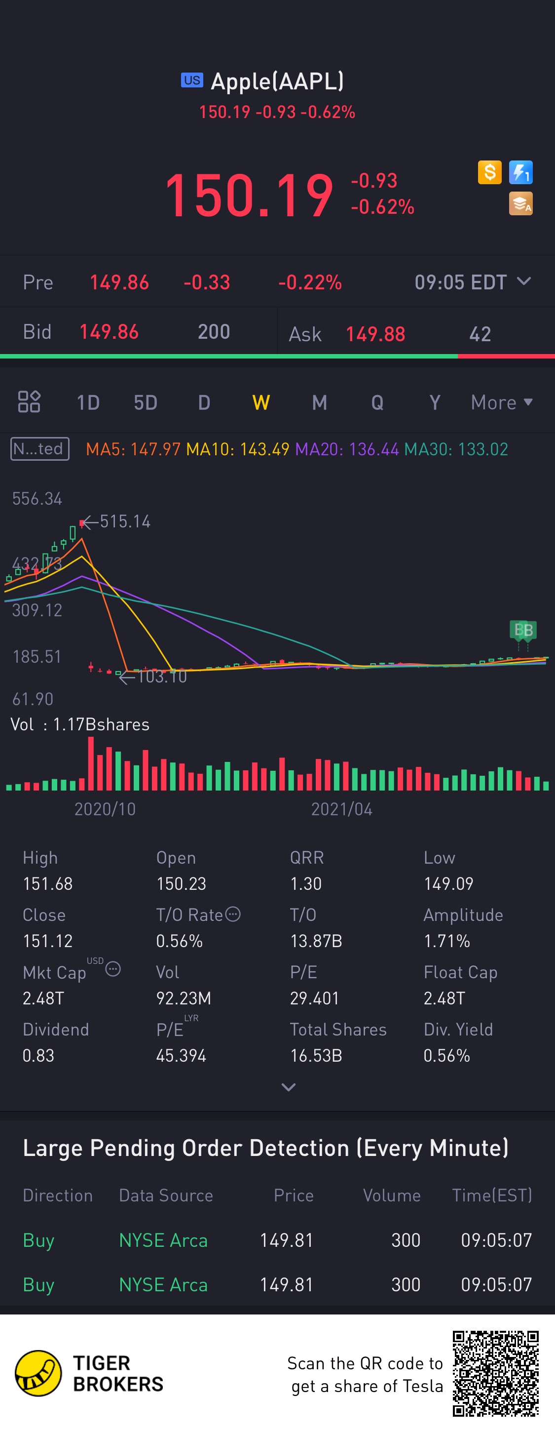 Several short-term signals, along with a general good trend, are positive and can be concluded that the current level may hold a buying opportunity as there is a fair chance for Apple stock to perform well in the short-term.