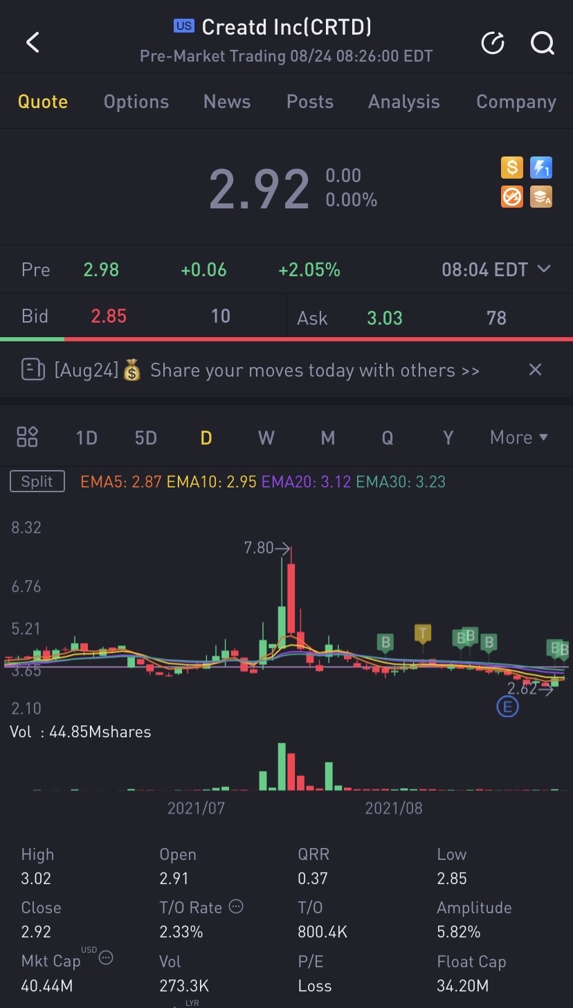 $Creatd Inc(CRTD)$bought this stock and made profit initially, why did i go back in…..[Comfort] [Sigh] [Sad]