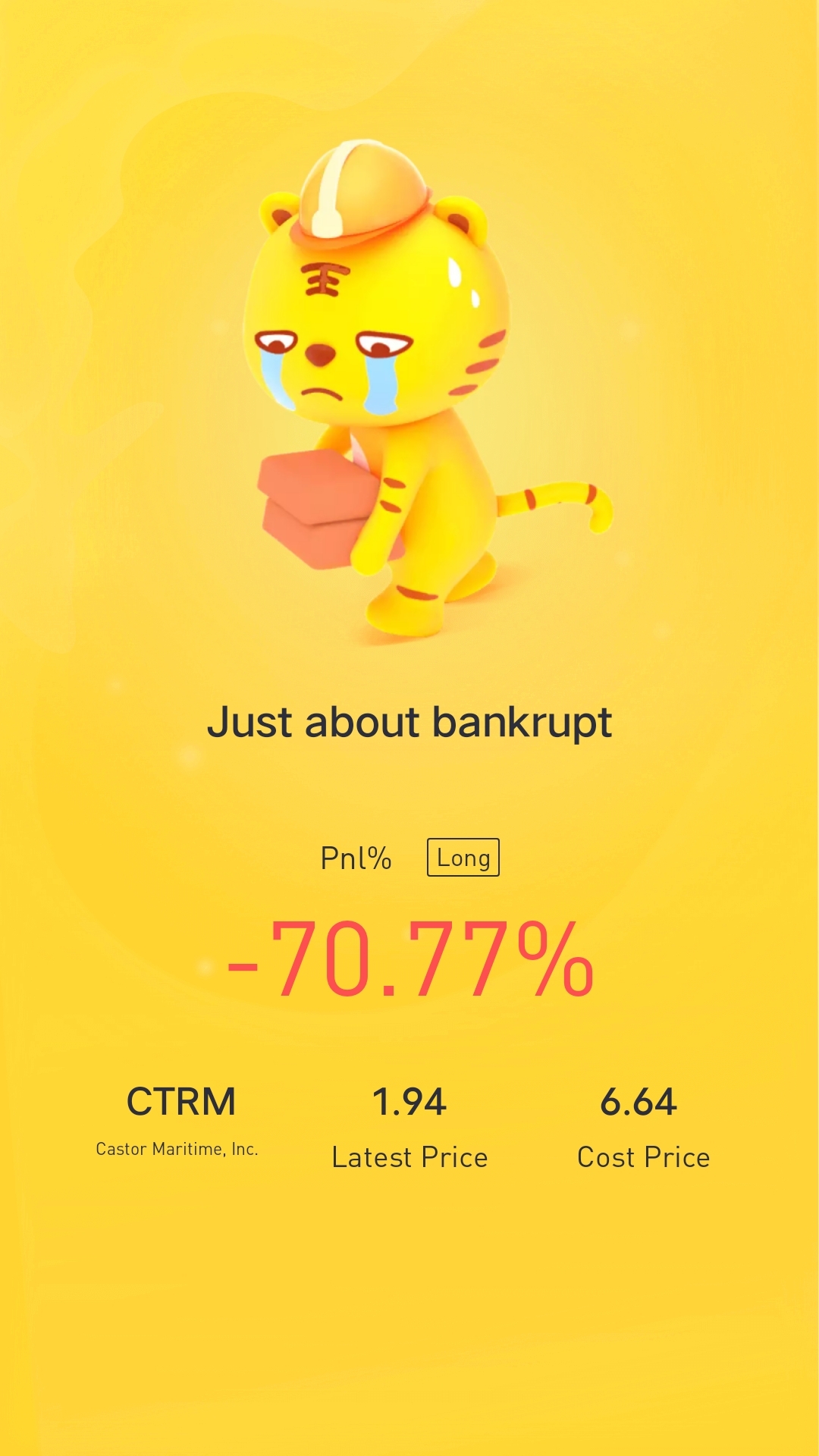 $Castor Maritime, Inc.(CTRM)$ if yall ever feel bad. I'm sure many of us are still holding