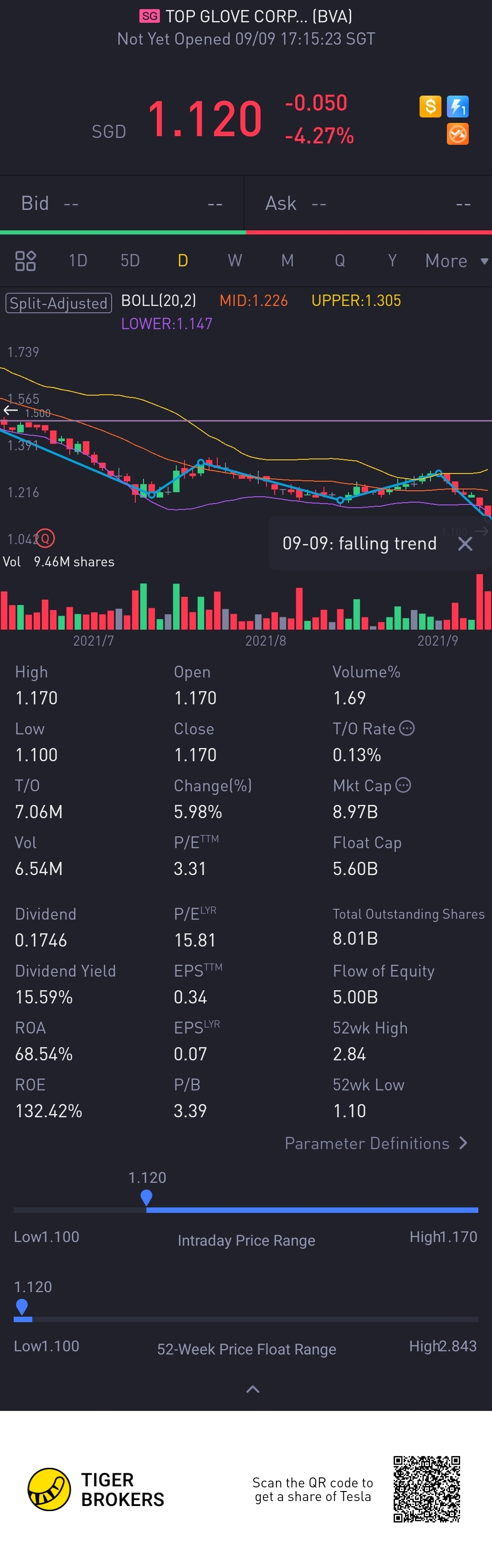 $TOP GLOVE CORPORATION BHD(BVA.SI)$free fall?