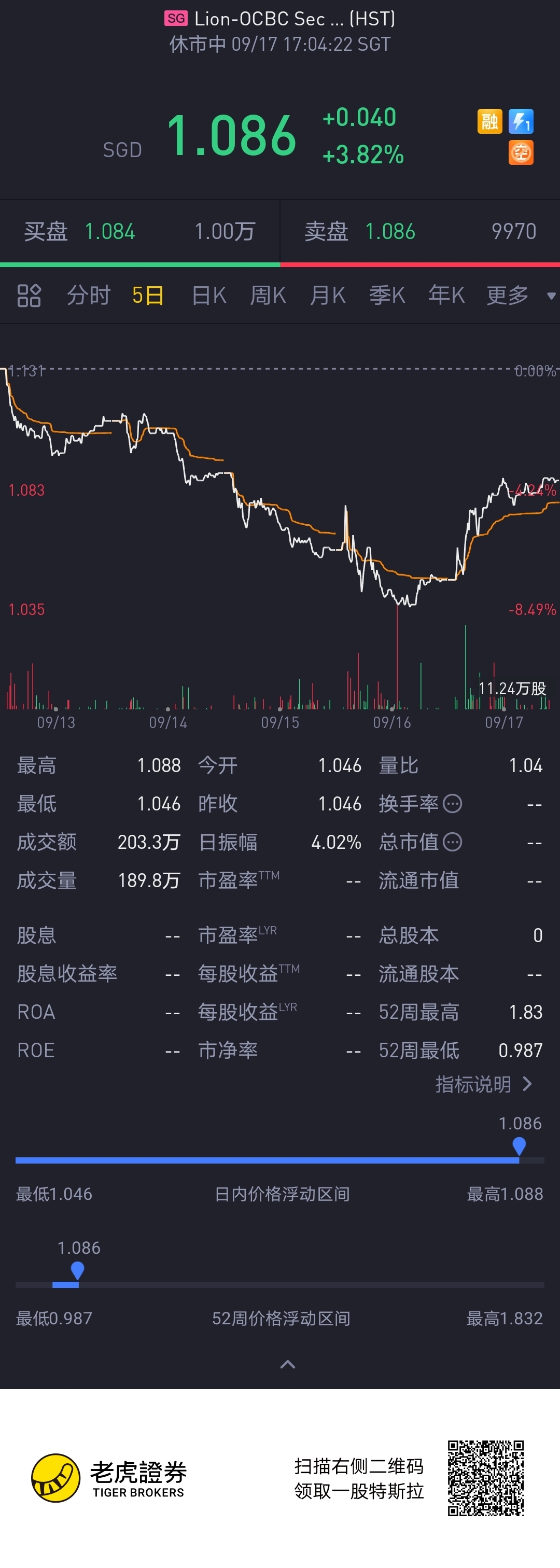 $Lion-OCBC Sec HSTECH S$(HST.SI)$ rising