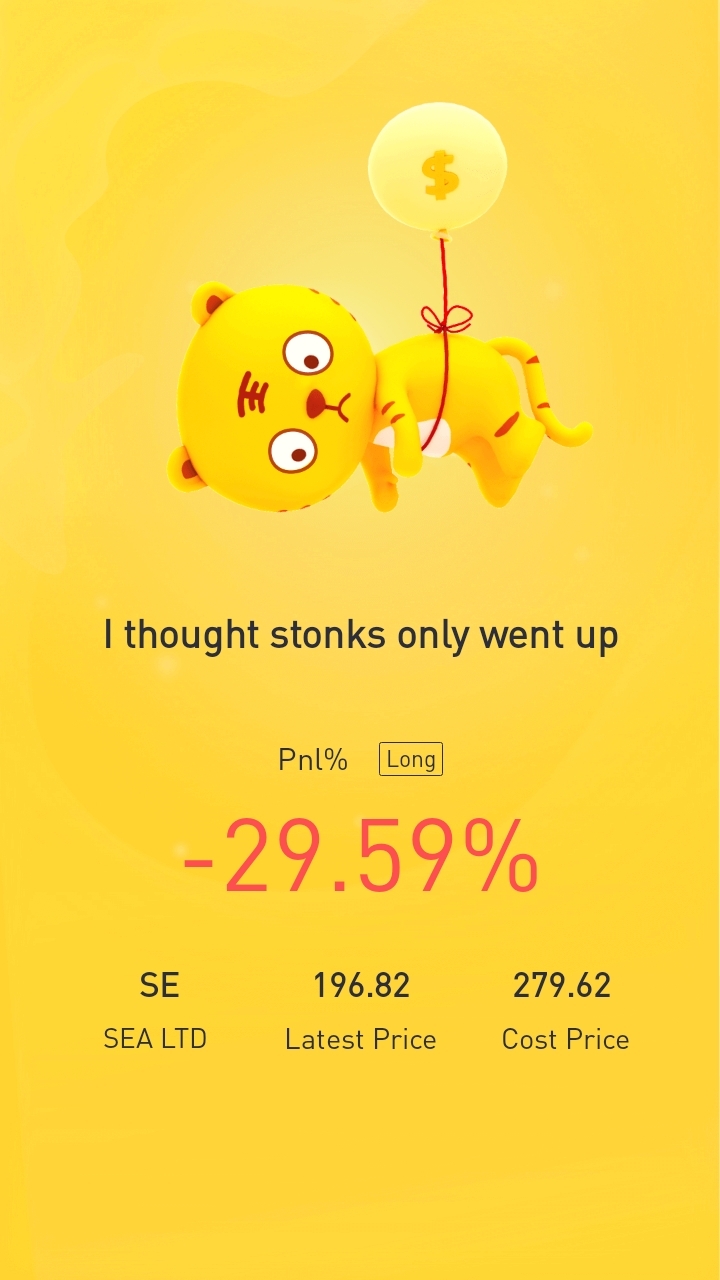 $SEA LTD(SE)$Really under the sea.. entry price at $315 and I was prepared to DCA when drips. Although no change in fundamentals, I have to admit that it's getting frightening now when all my orders are filled up quickly [LOL]
