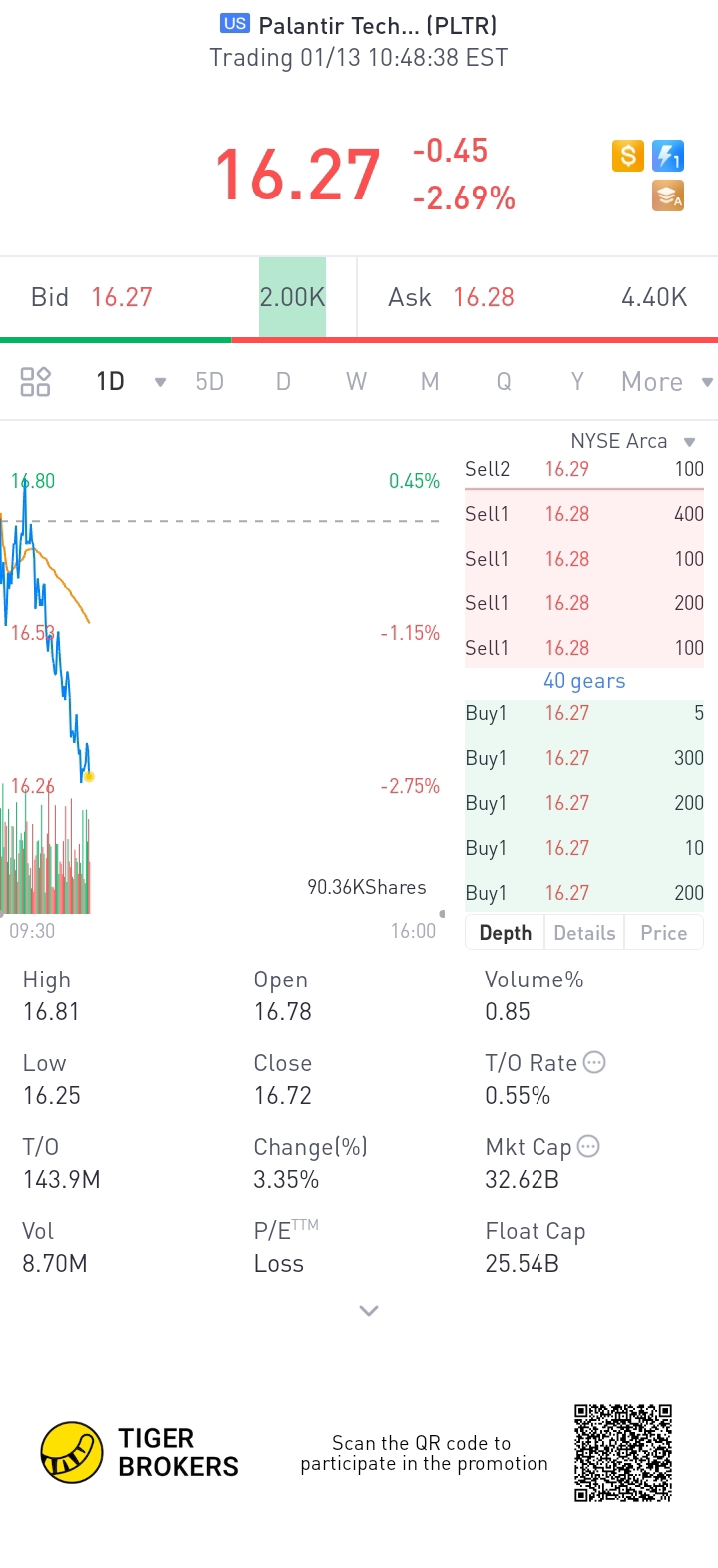 $Palantir Technologies Inc.(PLTR)$SEe guys... It is hitting 15... Keep haunting these longy.. it will be on a downward pressure in the long term... $12 to $13 is considered a good territory...