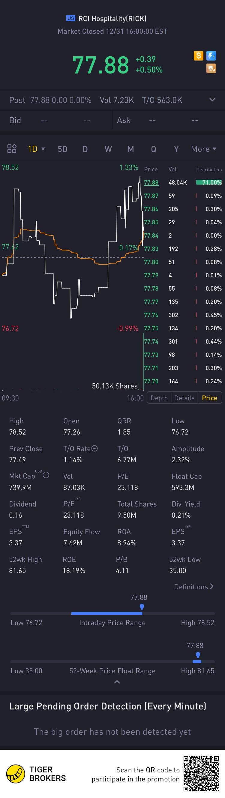 $RCI Hospitality(RICK)$Looking like it continuing to go upwards with more locations in Texas opening and high free cash flow expected in 2022