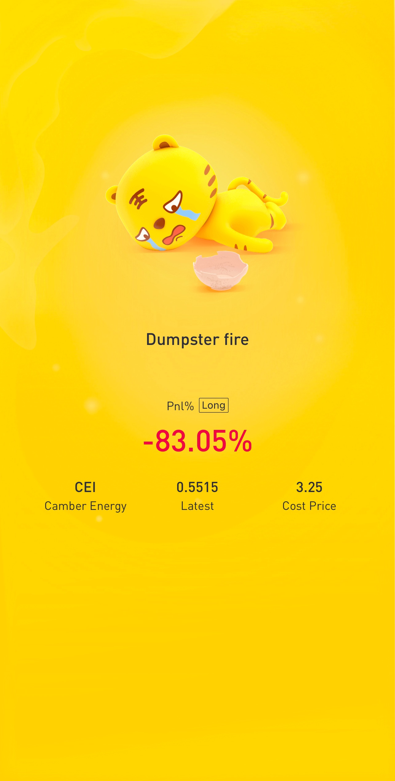 $Camber Energy(CEI)$Don't whine too much. There are still people in worse loss than yours guys. Hope there is more % loss than mine. Don't want to be alone on top of mountain. [Speechless] [Smug] [OMG]