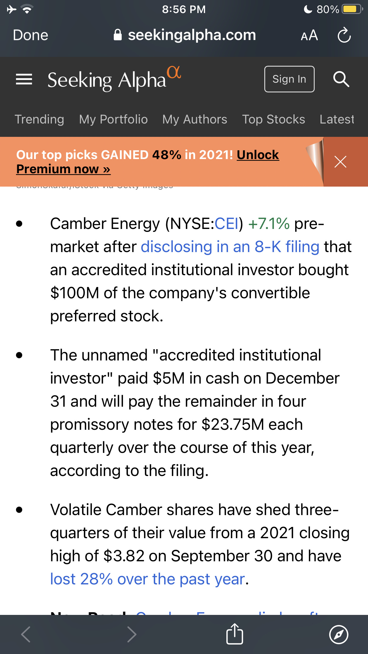 $Camber Energy(CEI)$Camber Energy spikes after investor buys $100M of preferred stock