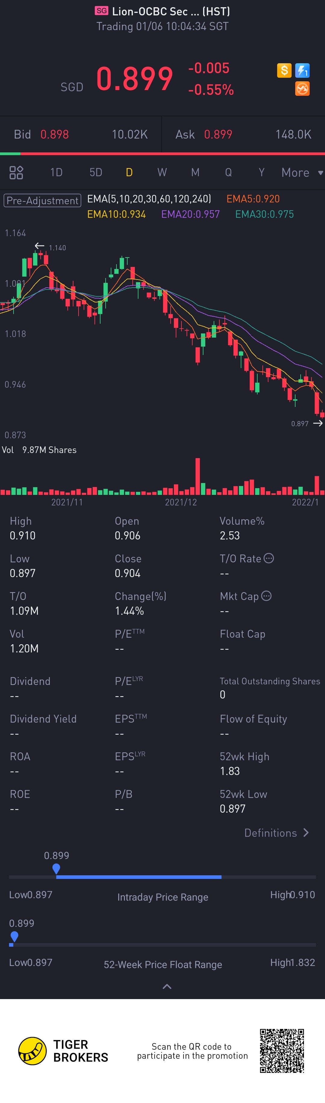 $Lion-OCBC Sec HSTECH S$(HST.SI)$ below 90sens. Is an ETF, hold long and keep DCA. Fruit will ripe when time is right. [Victory] [Victory]