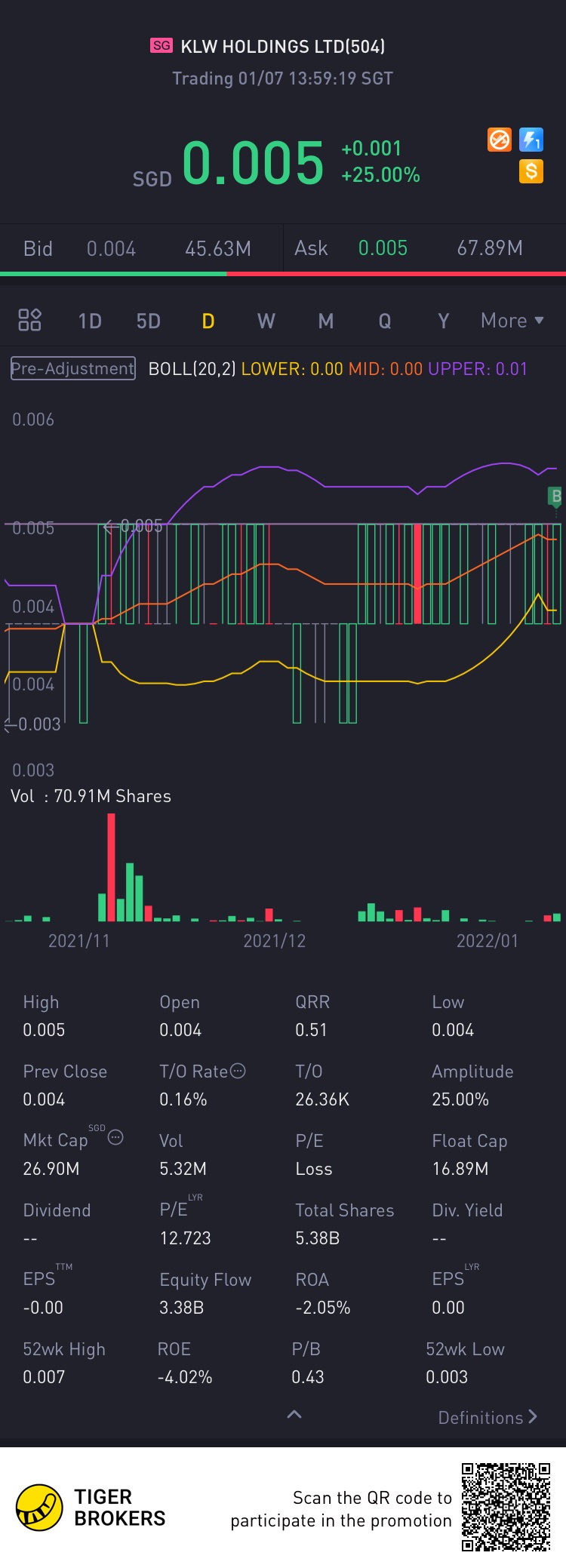 $KLW HOLDINGS LTD(504.SI)$With more people staying at home during the past 2 years a marked improvement in home renovation in Singapore continues. Could this stock increase by another 25% in the first 2 quarters of 2022?