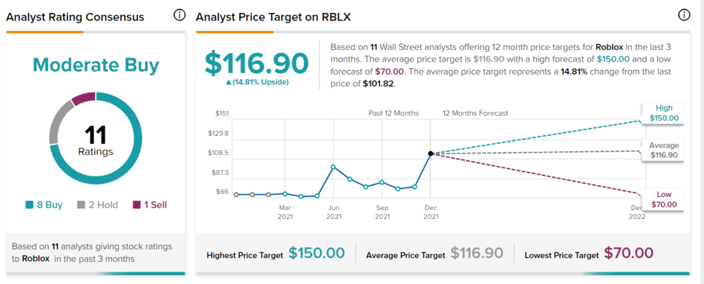 Turning to Wall Street, Roblox receives a Moderate Buy consensus rating, based on eight Buy ratings, two Hold ratings, and one Sell rating. The average Roblox price target of $116.90 implies 14.81% upside potential. The spread between the high price target of $150 and the low of $70 is quite vast and signals staunch disagreement among analysts.