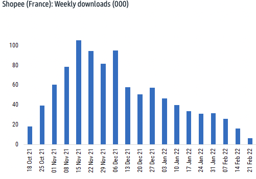 Shopeeannounced that it will be leaving France and its platform will be shut down on 6 March 2022. This comes after its initial entry into France in October 2021. Recall that Shopee takes a calibrated approach to market expansion, initially testing waters in new markets, and if the conditions are right, further investments are made into the market to make it a core market.
