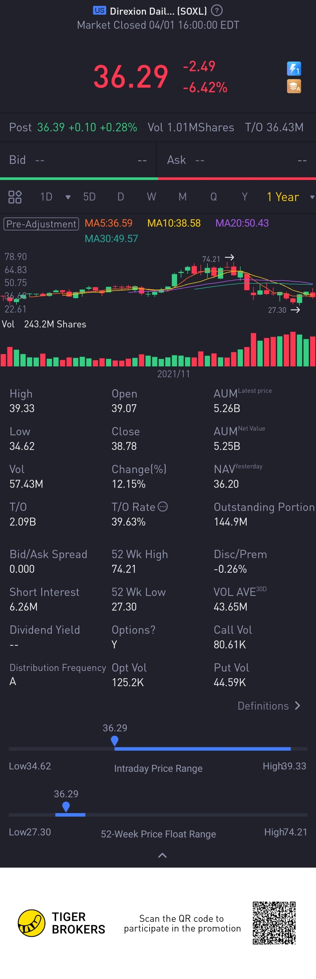 $Direxion Daily Semiconductor Bull 3X Shares(SOXL)$ just added