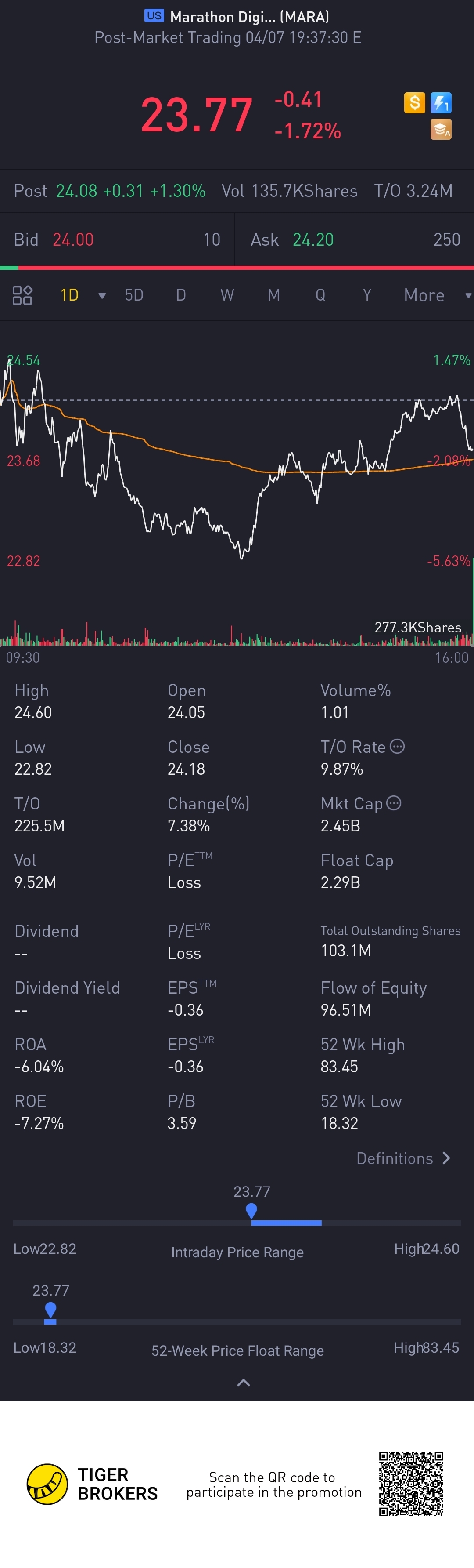 $Marathon Digital Holdings Inc(MARA)$buy low sell high, no panic buy or sell.