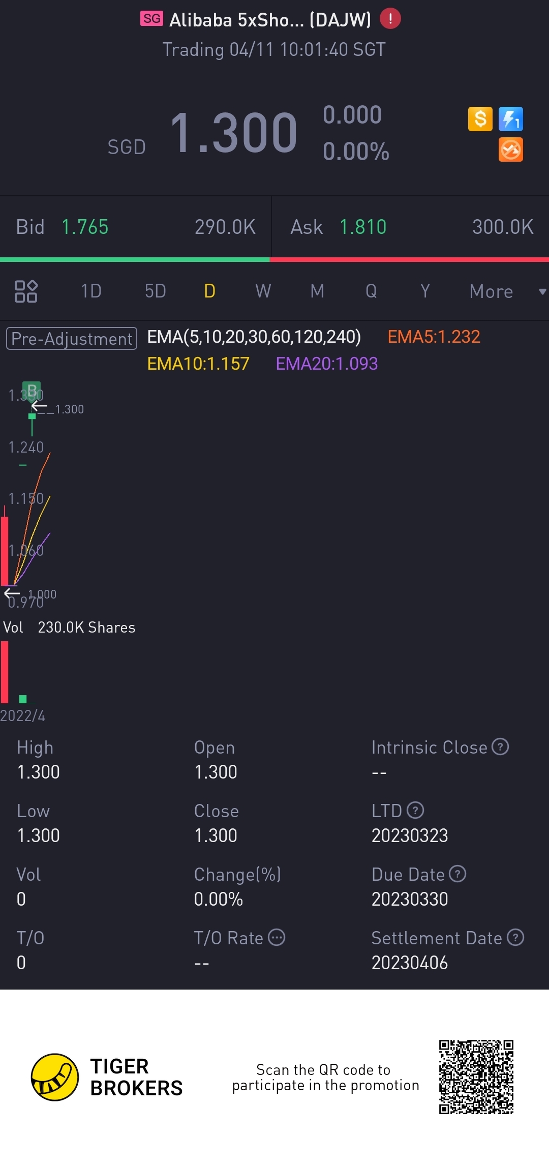 $Alibaba 5xShortSG230330(DAJW.SI)$Is tiger even aiming to resolve the difference between the tiger listing price and sgx? If not we will always be penalised and made to hold on to this