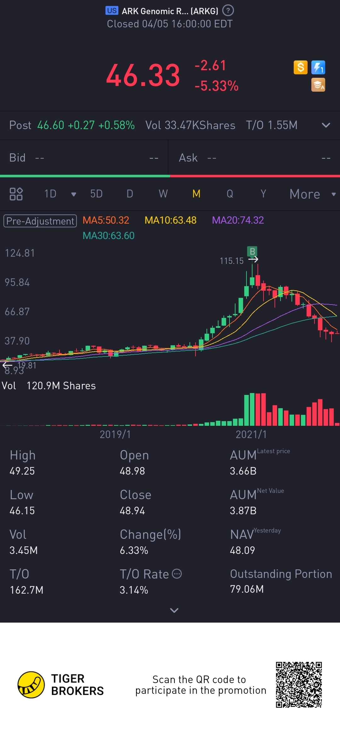 $ARK Genomic Revolution Multi-Sector ETF(ARKG)$5 years 🙏🙏🙏