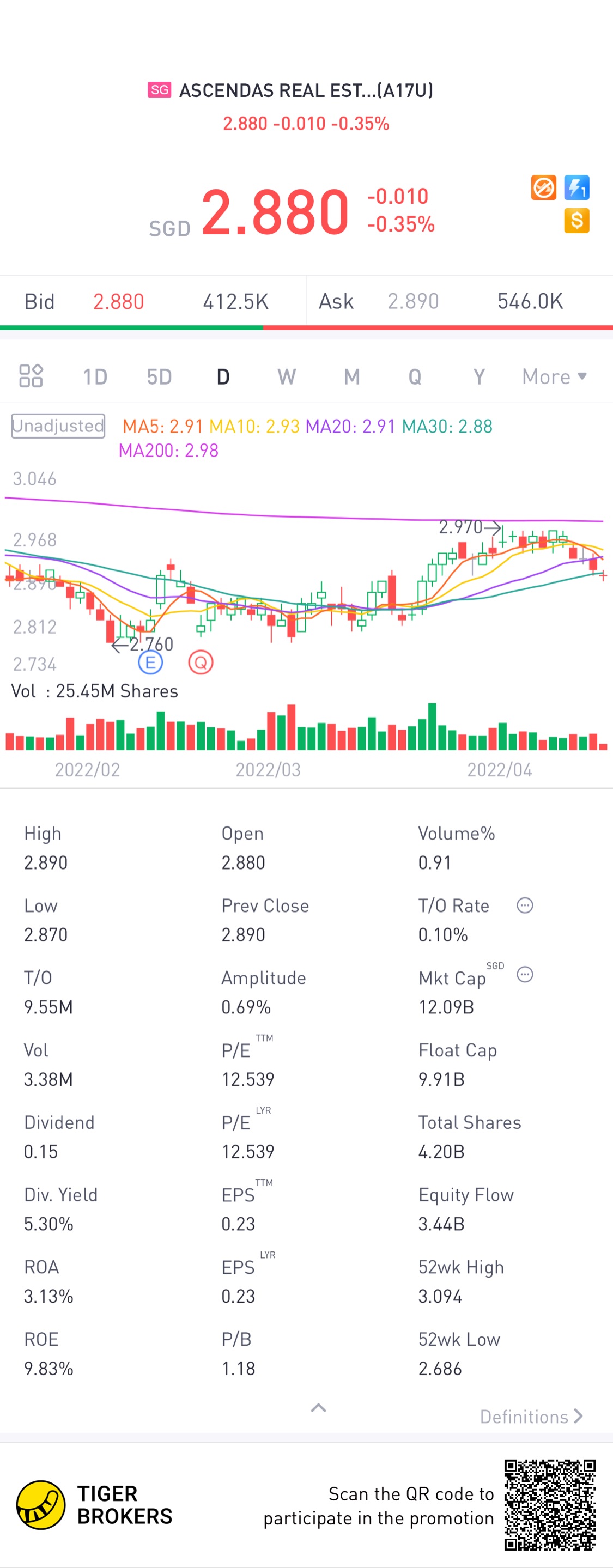 $ASCENDAS REAL ESTATE INV TRUST(A17U.SI)$At current price over 5% yield and Temasek backed. No complaints.