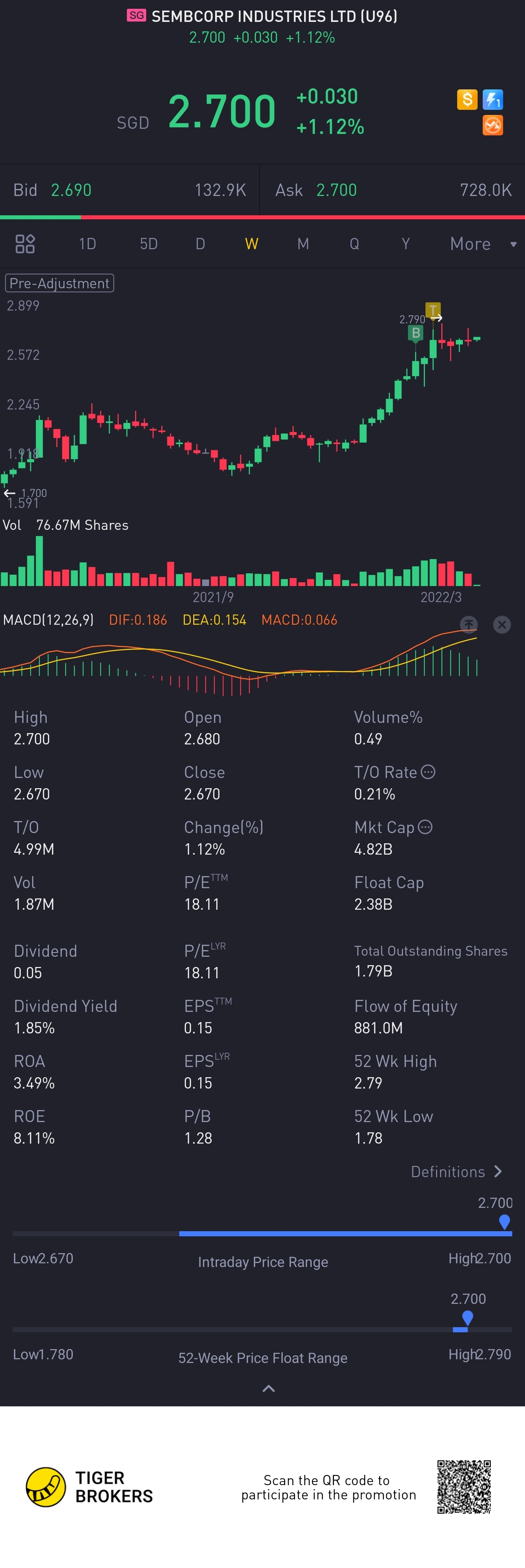 $SEMBCORP INDUSTRIES LTD(U96.SI)$go all the way up