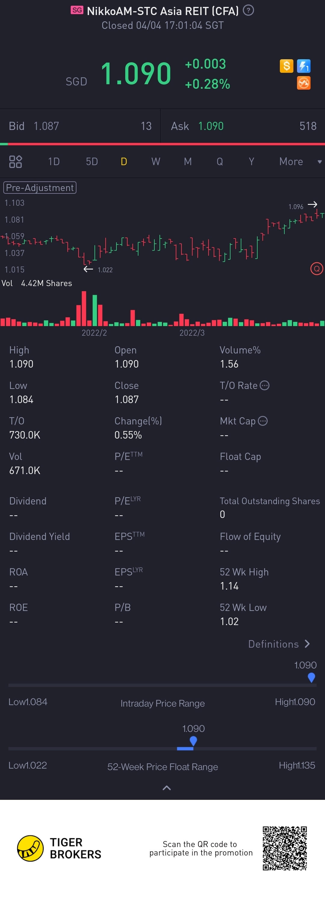 $NikkoAM-STC Asia REIT(CFA.SI)$good to buy