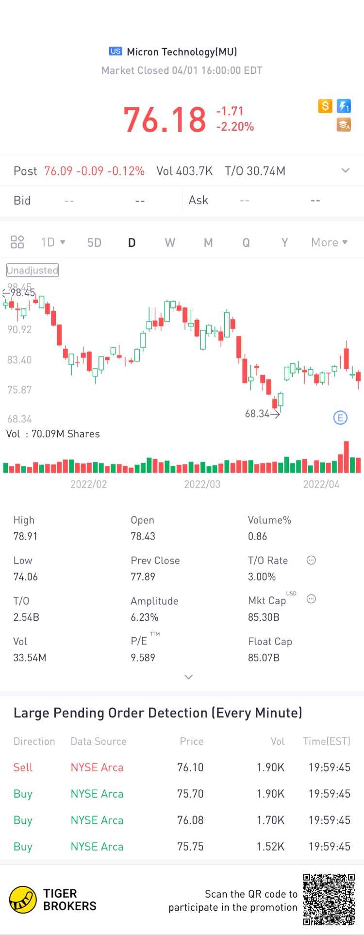 $Micron Technology(MU)$Down or up. From the cycle, I think it is going up to $80 short term