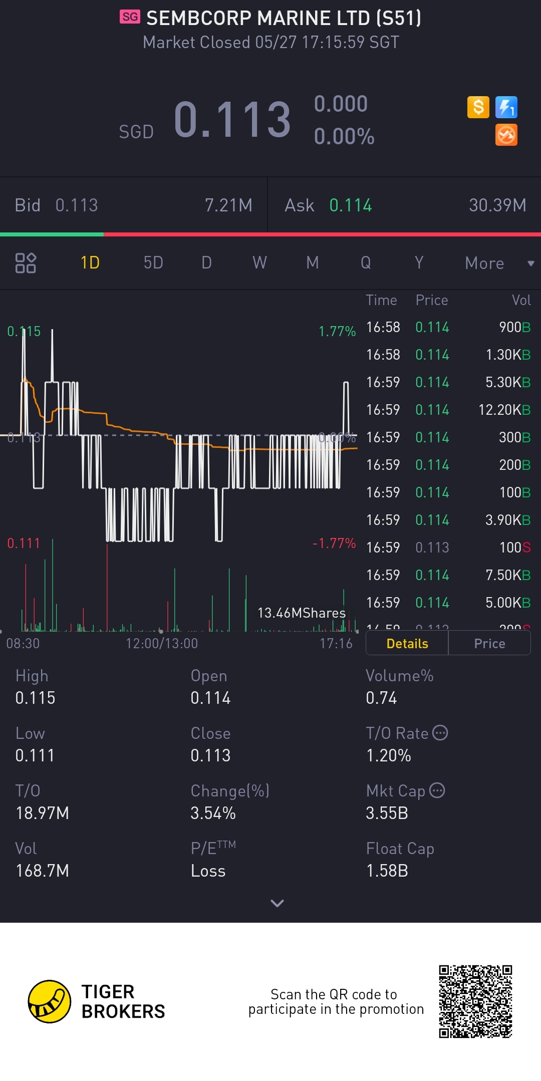 $SEMBCORP MARINE LTD(S51.SI)$this is my worse holding. Average price S$0.88, then come the $0.20 right, I never took up an right expired and price drop to $0.15~$0.22. Then thy release the 2n right at $0.08... Don't think I will ever recover the lost from this counter...