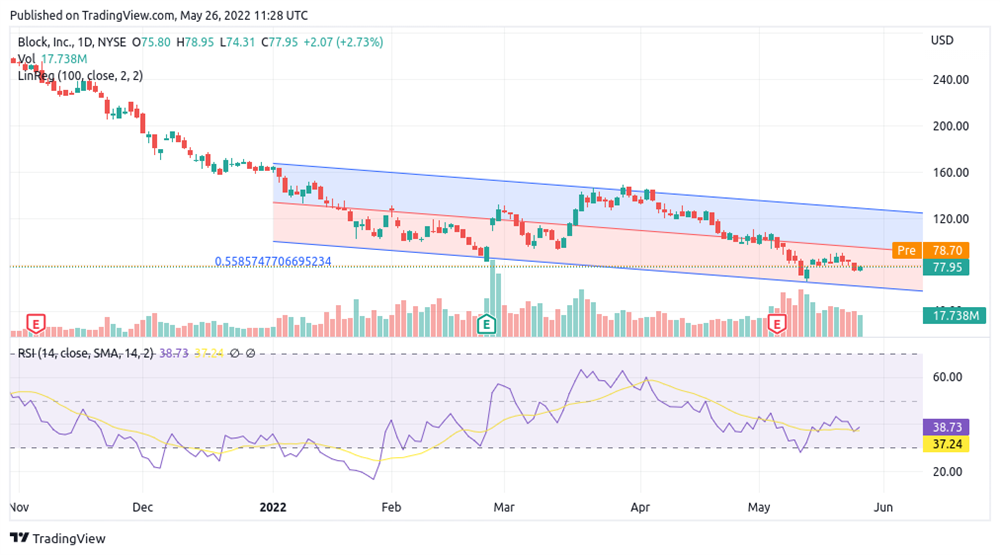 Block, Inc. (SQ), is perhaps one of the most well-known companies in the fintech and blockchain space. Its presence was popularized by its owner and former Twitter CEO Jack Dorsey, but it is at present failing to live up to some investors’ expectations. Block’s share price has been severely discounted while still trading at a high premium. The stock is trading 70% below its recent highs and is currently down 52.48% YTD. Additionally, the stock is also severely underperforming theMarketBeatconsensus price target, which suggests it is not meeting analysts’ expectations.