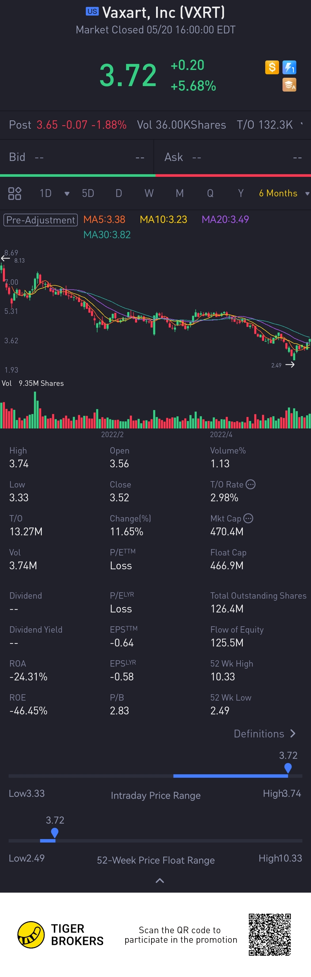 $Vaxart, Inc(VXRT)$Vaxart, Inc. is a clinical-stage biotechnology company that is primarily focused on the development of oral recombinant vaccines based on its Vector-Adjuvant-Antigen Standardized Technology (VAAST) oral vaccine platform. Its programs include tablet vaccines designed to protect against coronavirus, norovirus, seasonal influenza and respiratory syncytial virus (RSV), as well as a therapeutic vaccine for human papillomavirus (HPV). The Company’s product pipeline includes norovirus vaccine, an oral tablet vaccine, which is in a Phase Ib clinical trial with bivalent oral tablet vaccine for the GI.1 and GII.4 norovirus strains; influenza vaccine, which is in Phase II clinical trial for the treatment of H1 influenza infection; respiratory syncytial virus vaccine; and coronavirus vaccine, which is in Phase II clinical trial for the treatment of SARS-CoV-2 infection. The Company is also developing therapeutic vaccines for cervical cancer and dysplasia caused by human papillomavirus.