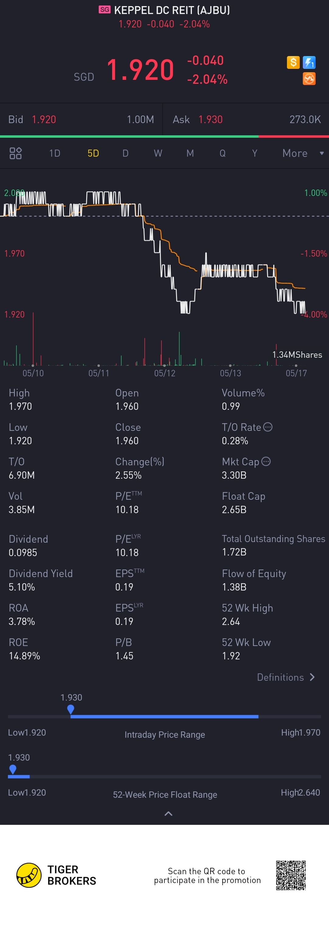 $KEPPEL DC REIT(AJBU.SI)$break new low every wk, continue to hold first. Related data centre reit might drop further down.
