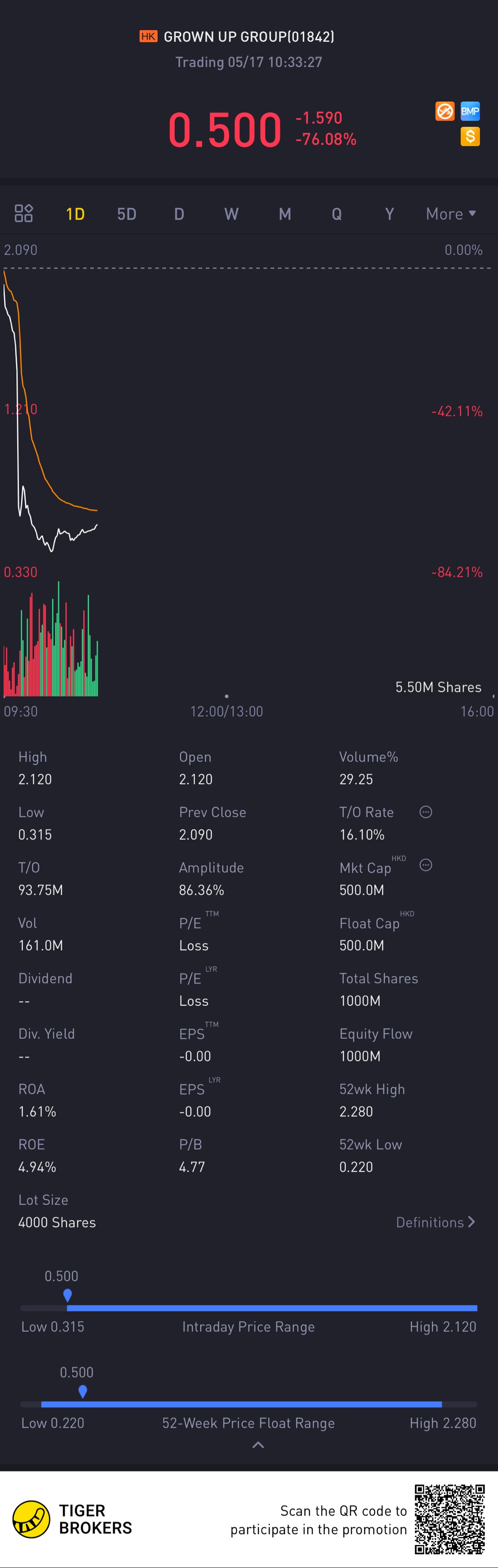 $GROWN UP GROUP(01842)$Woahh another pump and dump, trade safely all!