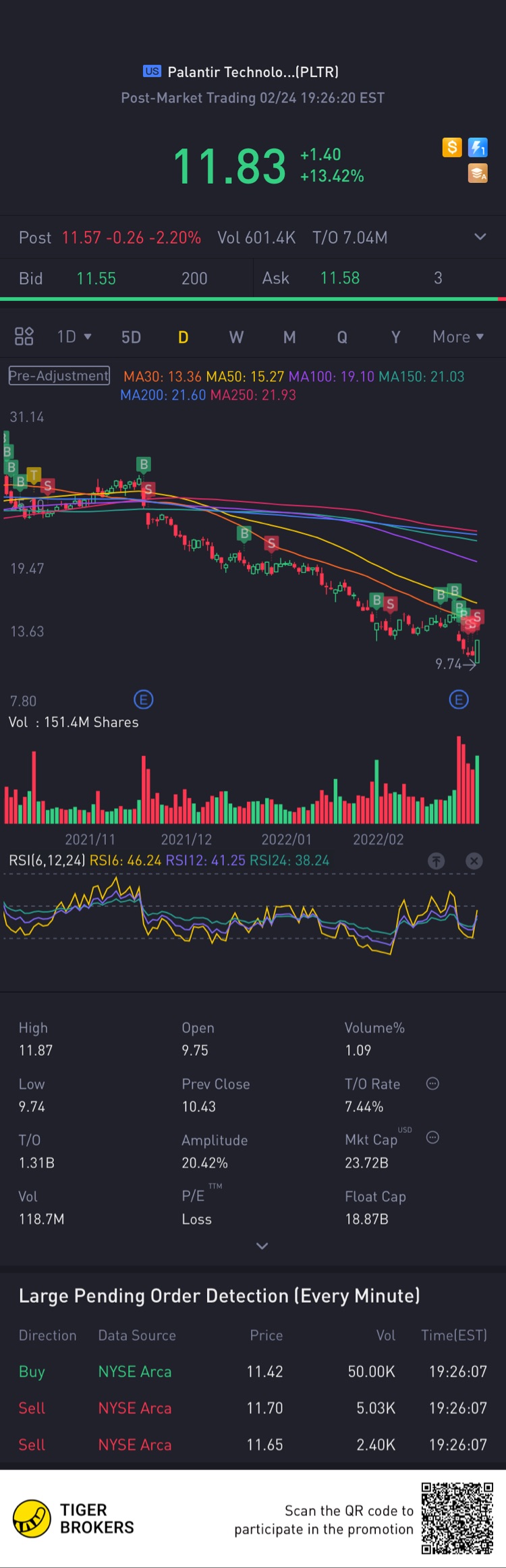 $Palantir Technologies Inc.(PLTR)$I see so manypeople complaining about PLTR. If you can't stomach this then go invest into $SPDR S&P 500 ETF Trust(SPY)$ or some mature company like $Apple(AAPL)$