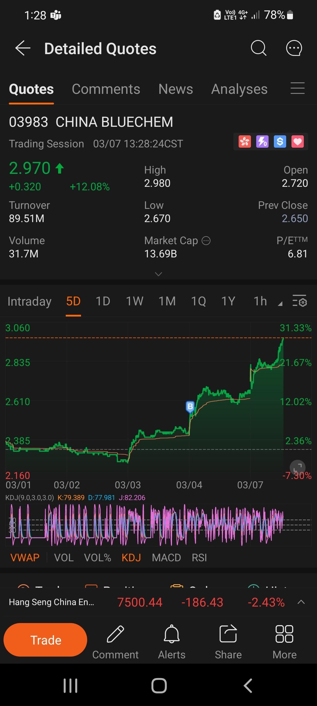 $CHINA BLUECHEM(03983)$$Alibaba(09988)$$WILMAR INTERNATIONAL LIMITED(F34.SI)$buy into rising star not catch falling knifes