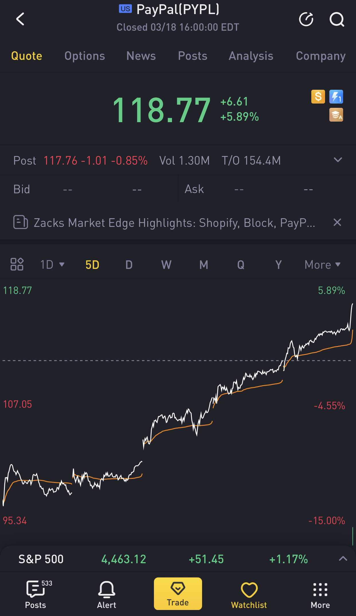 $PayPal(PYPL)$performed exceptionally well thisweek, forming a bullish pattern. There have been price targets set at $181, the few incoming weekswill hence be crucial to test PayPal's foundation/fundamentals. I believe that they have what it takes to recover and this will benefit longs in the long-term. 🚀🌙